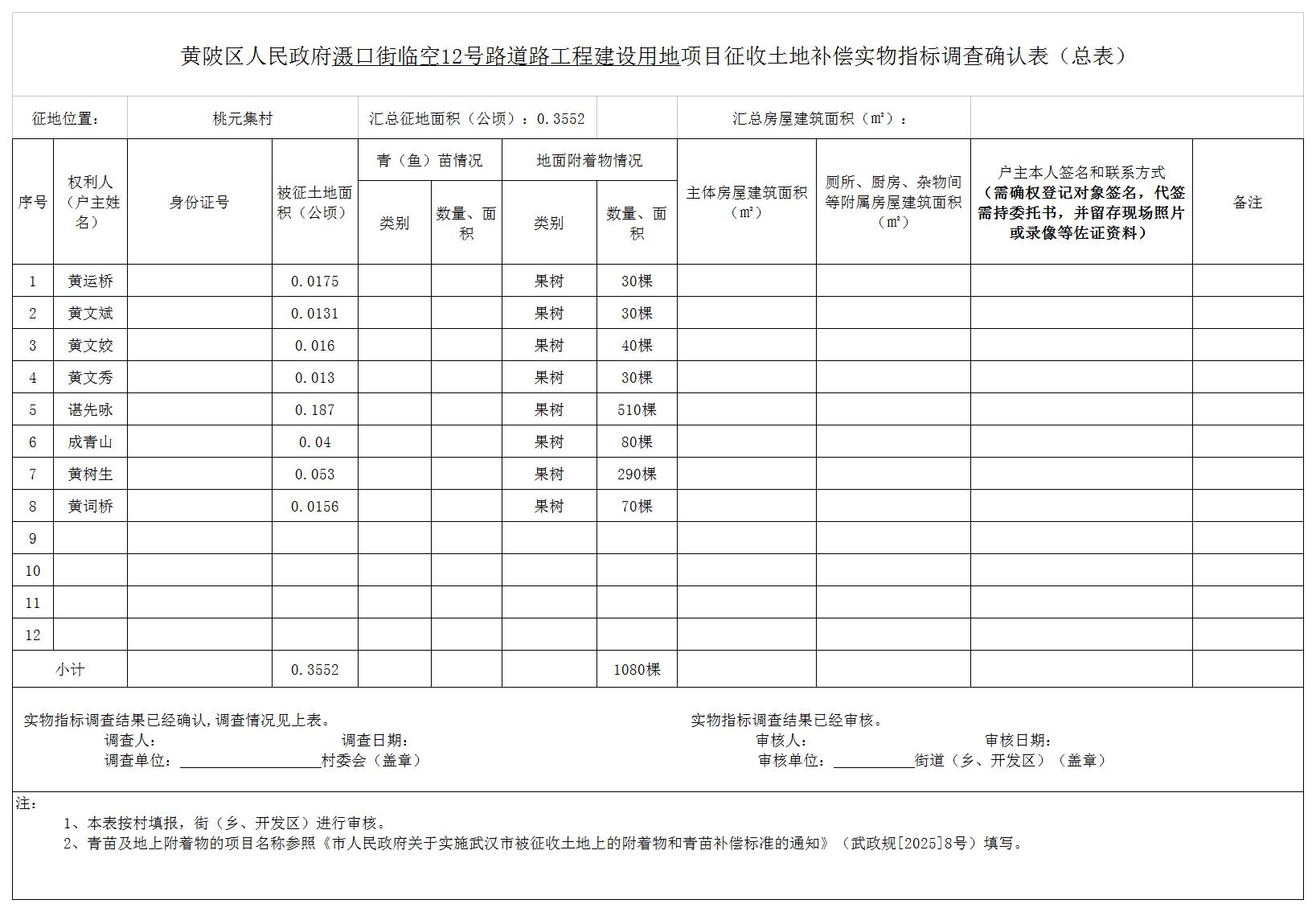 因实施黄陂区滠口街临空12号路道路工程建设等公共利益需要,黄陂区人民政府拟征收滠口街桃元集村共计0.3552公顷,用地范围图详见附件1。土地用途为城镇村道路用地。