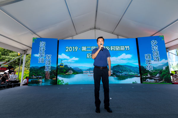8月4日,2019第二届武汉市乡村旅游节在黄陂木兰天池启动。在启动仪式上,黄陂区政府区长何建文致欢迎辞;武汉市文化和旅游局局长杨相卫代表举办方致辞,同时发布了全市第二批30个美丽乡村旅游点名单、16个武汉乡村旅游夏季特色产品推荐和旅游节活动菜单;中共黄陂区委书记曾晟、武汉市文化和旅游局局长杨相卫共同为木兰天池木兰文化馆揭牌;武汉市文化和旅游局副局长李劲松 、中国农业银行武汉分行副行长何政上台签署了乡村旅游节对接计划暨全面战略合作协议;农行黄陂区支行与黄陂区云雾山景区和木兰胜天负责人签署了银企金融合作协议;武汉市政府副秘书长李涛、市委宣传部副部长马勋标、市文化和旅游局局长杨相卫上台为2018年度全市乡村旅游项目颁奖兑现奖励;最后由武汉市人民政府副市长陈邂馨上台宣布第二届武汉乡村旅游节正式启动;随后还进行了精彩的文艺演出和各区乡村旅游点展区观展、天池游园等活动。