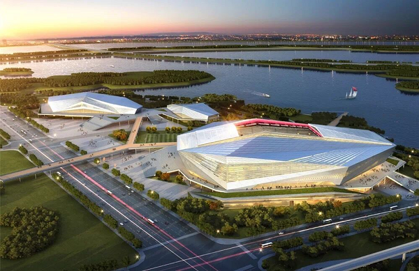 该项目建设面向国际、面向未来,彰显国际滨水旅游名城的形象窗口,定位为高效复合的国家临空经济示范区、开放引领的国际会展门户、创新共享的大都市区新引擎、港产城融合的绿色生态城区。