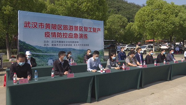 4月29日,我区旅游景区复工复产(入园)疫情防控应急演练在木兰天池景区举行,市文化和旅游局、市应急管理局、市公安局、市卫健委、市消防支队相关负责人应邀参加观摩并作指导,来自我区10余家已开园景区相关负责人参加观摩活动。