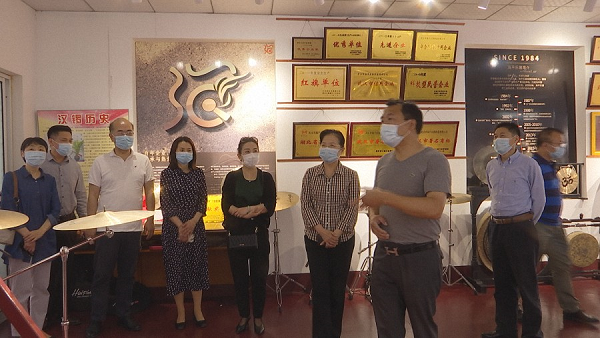 在副区长汪利珍的陪同下,调研组一行来到六指街高家河锣厂,详细了解汉锣发展及传承保护工作情况。据悉,汉锣制作工艺精湛,近年来黄陂区大力传承保护非遗“汉锣”铸造技艺,成果显著, “汉锣制作技艺”已成功入选第六批湖北省非物质文化遗产名录。