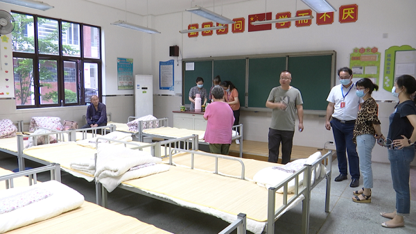 滠口街纪委书记张绍鹏:昨夜至今我们连夜组织群众生活用品,床位,开水瓶热水器等全部配备到位,特别是现在仍处疫情期间,我们在每个安置点、每个教室里都准备了口罩和消毒酒精。