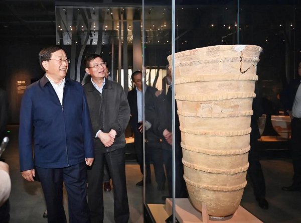 王忠林在盘龙城遗址博物院参观、调研,详细了解盘龙城遗址发现、研究及文物保护相关情况。