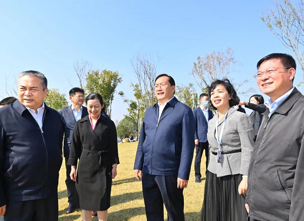 王忠林步行来到盘龙城遗址核心区,沿途察看盘龙城遗址公园绿化、游客服务等情况。 一路步行来到盘龙城遗址核心区,王忠林沿途察看盘龙城遗址公园绿化、游客服务等情况,要求加强绿化美化和景观设计,让博物院更好地融入周边公园,让市民和游客在逛博物院的同时,能赏花、闻香,感受大自然的四季色彩。时值周末,不少市民在公园内游玩,王忠林向大家问好,询问市民们的游览体验。有位市民说,自己今年65岁了,武汉有不少景点拿着老年证就能免费玩。王忠林祝福她身体健康并说,我们将继续为老年人提供更暖心的服务,让大家的老年生活更有质量。