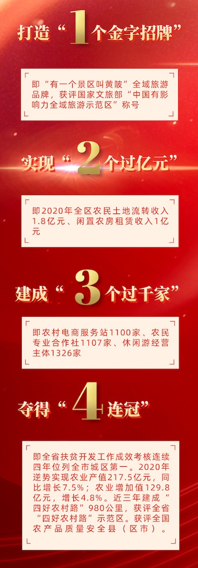 立足特色山水资源生态,宜种则种、宜养则养、宜游则游,在稳定粮食种植面积、服务保障城市“菜篮子”基础上,全域推进农旅融合、文旅融合。建成百亩以上规模种植基地320个、林果茶基地267个、水产基地110个。市级以上农业龙头企业54家。“二品一标”产品196个、总数居全市第一。建成景点景区23个,其中A级景区15个,A级景区全国区县市最密集。旅游直接从业人员十多万人,带动36万人吃上“旅游饭”。全区村级集体总收入达到35996万元,村均收入达到61万元。