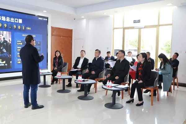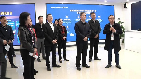 在汉口北国际贸易港,任鸿斌一行实地参观考察了汉口北外贸服务中心、海关申报大厅及海关监管作业场所,现场听取和了解汉口北外贸出口业务进展情况。