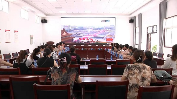 在六指街武汉东方荣升米业有限公司,区妇联组织各界优秀妇女代表集中收看了庆祝大会电视直播,大家激情澎湃,豪情满怀,为祖国的强盛感到自豪。