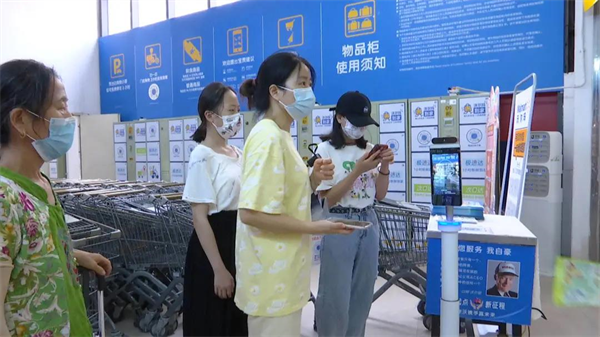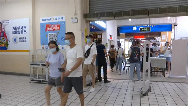 在沃尔玛超市门口,记者看到,市民们在超市管理人员的引导下,有序排队,主动扫码测温,现场秩序井然。
