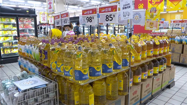 在超市生鲜区,记者看到,各类蔬菜未断档,菜品丰富;福临门、鲁花等食用油正在促销货架上满满当当;大米、面粉等主食整齐摆放供顾客挑选购买。