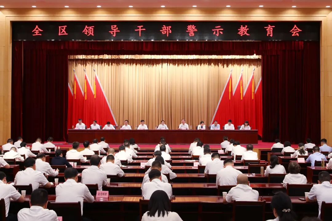 区委常委,区人大常委会、区政府、区政协领导班子成员,区法院院长、区检察院检察长等参加会议。与会同志集体观看了警示教育片。