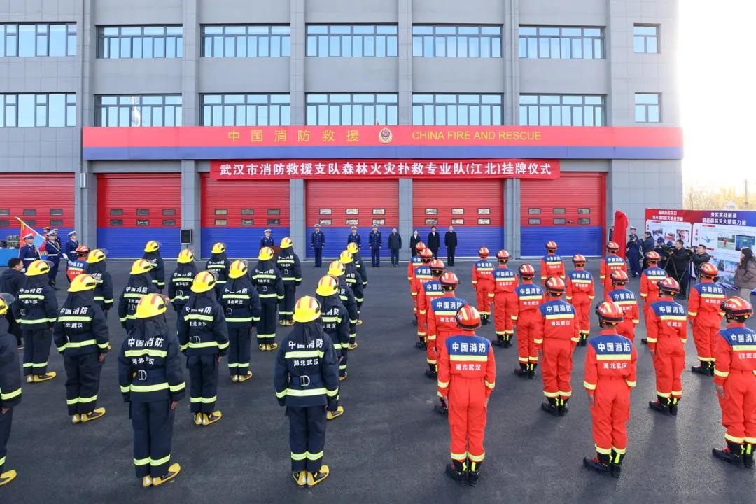 11月27日,武汉市消防救援支队森林火灾扑救专业队(江北)在黄陂区挂牌成立。省消防救援总队总队长董新明,市政府副市长孟晖,区委书记何建文,区长张劲等市区领导共同揭牌。
