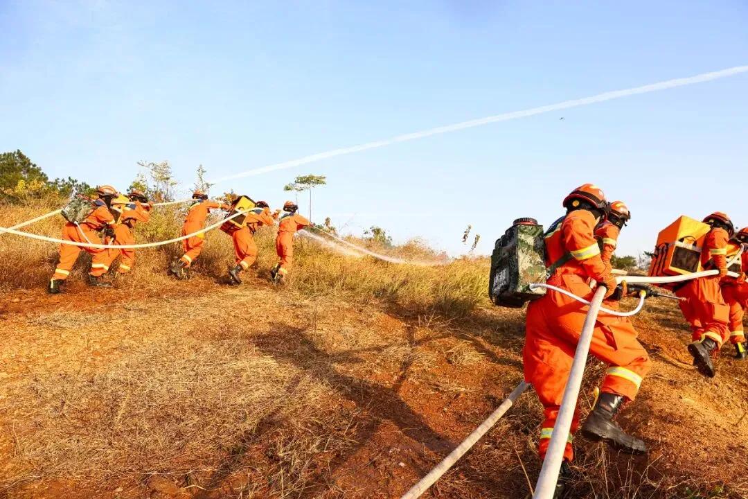 挂牌仪式后,武汉市消防救援支队在黄陂区王家河街开展森林灭火实战演练。200余名指战员在统一指挥下,完整呈现灾情接报、初期响应、力量调集、火场侦察、战术展开、应急避险、总攻灭火及火场清理全流程,充分展现了专业队“科技+战术”的现代化处置能力。