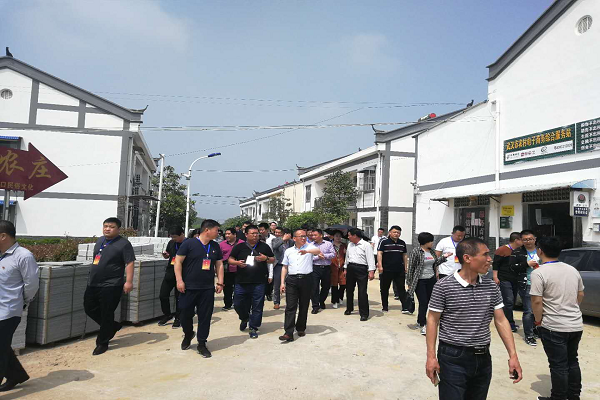 随后考察团一行前往六指街新博村考察,实地查看了村湾环境,了解了“市民下乡”实施情况、“田园综合体”的打造模式等并在新博村党员群众服务中心会议室召开座谈会。新博村党支部书记黄晓明介绍道:“本村居民较高的幸福指数有赖于“党建+”的发展模式,党建引领组织建设、制度管理、生态文明和精准扶贫,我们有信心通过‘红色三乡’,成功实现智慧农业的转型。”