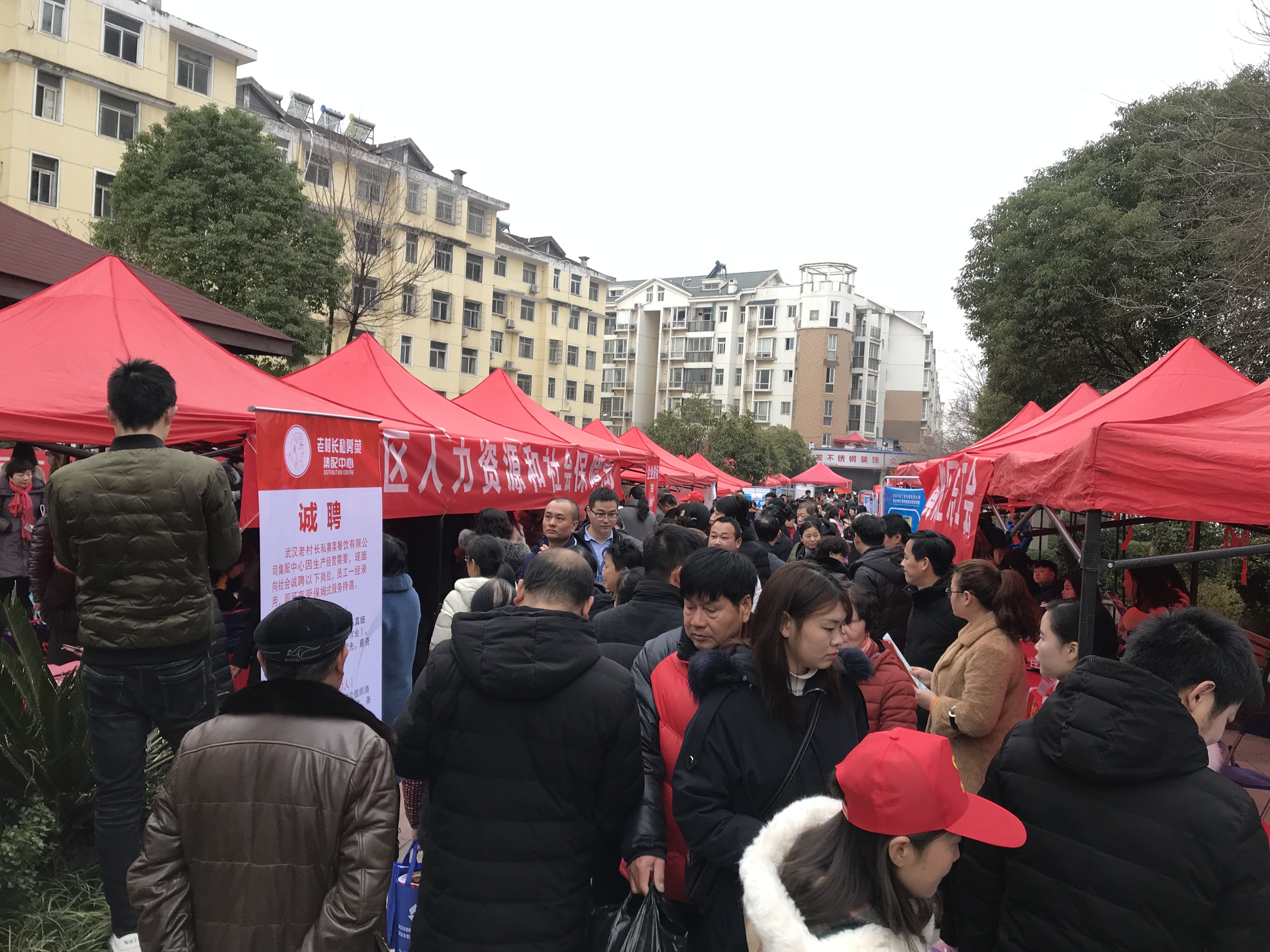招聘会相关负责人介绍,为解决拆迁失地农民安置就业问题,黄陂区人社局、区劳动就业管理局、区商务局、区总工会、区妇联、滠口街工委办事处、滠口街人社中心联合举办了此次招聘会。截至中午,活动共吸引了近1700名求职者前来参会,840人进行求职登记,其中已有360名求职者与用人单位达成就业意向。