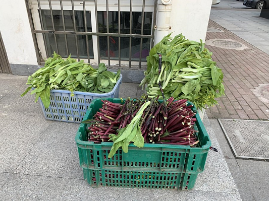 一位不愿留下姓名的老人,先后3次把自己种的菜送到社区党群中心门口,放下菜就转身离开,只留下一个蹒跚的背影。