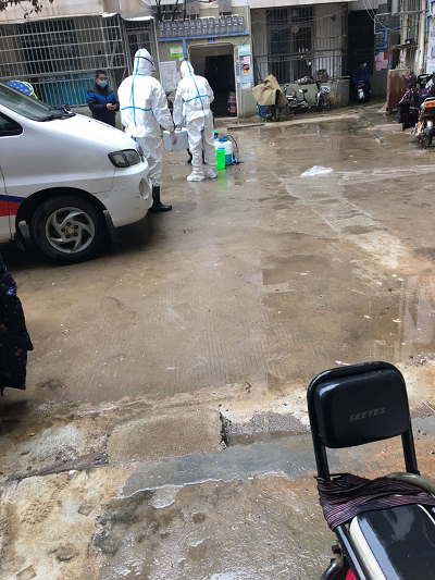 疫情来了。腊月三十那天,畅兴社区书记徐俊英被通知来街里开会。她很疑惑,过年了还开什么会呀。街卫生院范院长范庆红解释说,畅兴社区有第一例输入性新冠肺炎确诊病例,武汉市金银潭医院刚将病人转至黄陂区人民医院。她突然意识到大事不好,一场危机正暗流涌动。当天区疾控中心到该户家中进行消杀,现场工作人员穿着全套防护服,这场面像极了电影里的生化危机,徐俊英全程陪同,在楼下足足等了两个小时,心情忐忑不安。