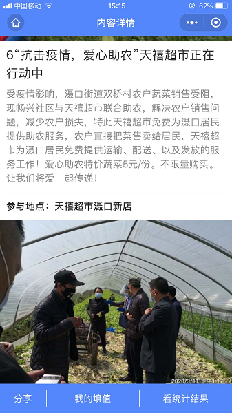 另外4个新社区,每个社区的每个网格分别建立一个生活物资保障群,对居民物资需求进行统计,社区向合作超市下订单后,待超市订单配送好各类物资,社区全体工作人员、物业人员以及志愿者一齐向居民发放。有居民反映团购的东西不好,社区干部、物业人员以及志愿者就去超市单独购买。小孩吃某种牌子的奶粉吃惯了,考虑到换品牌容易拉肚子,社区干部就跟超市一个个联系,直到买到奶粉为止。受疫情影响,双桥村农户的蔬菜销售受阻,街道组织发起爱心助农活动,每个社区在“统计助手”APP平台上发布各类蔬菜采购信息,以超低的价格传递爱心。有了菜、有了肉,餐桌上没有鱼怎么行呢?社区又马不停蹄开始订购活鱼。