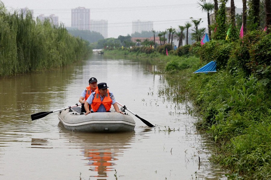今年汛期以来,环绕南湖村的府澴河、朱家河、新河水位持续上涨。7月10日,由于朱家河水位超过保证水位,政府组织将南湖村的13000余名居民集中转移。