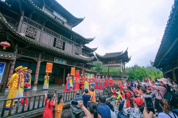 本次复演的锦里沟土家族民俗文化演出,由长江峡江号子非遗传承人邓勇雍牵头打造。将以“非遗+景区”的形式,通过土家族特有的舞蹈、说唱、曲艺、弹拨和高腔等表演形式,将最原汁原味的土家族文化在景区中展现给游客。