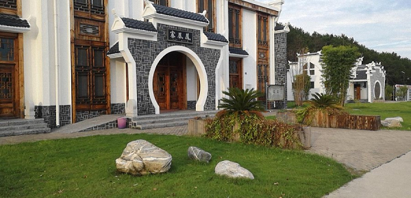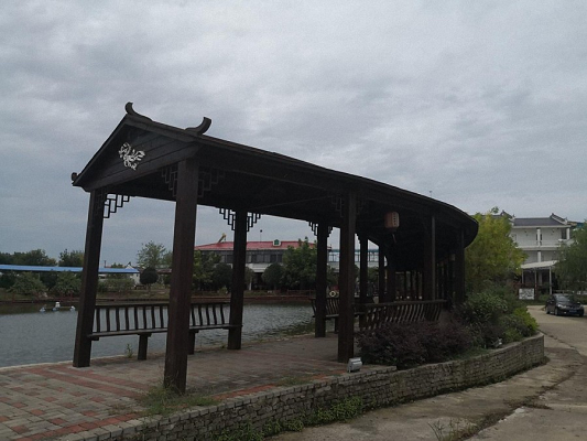 沿着8米宽的水泥路一路前行800米左右,穿过古色古香“油茶基地”木院门,一个大型水塘呈现眼前。