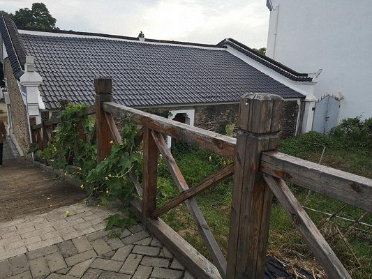 荷风送香,白墙黛瓦,篱笆小院,徽派民居干净整洁,好一个诗画村落。