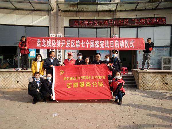 开发区管委会、司法所、派出所、城管中队、安监办、妇联、人社中心、商业银行等部门单位在露甲山广场开展“盘龙城经济开发区第七个国家宪法日全域12个村17个社区同步启动仪式”并组织“12·4”国家宪法日大型广场法治宣传和法律咨询活动。