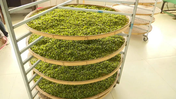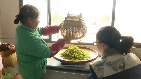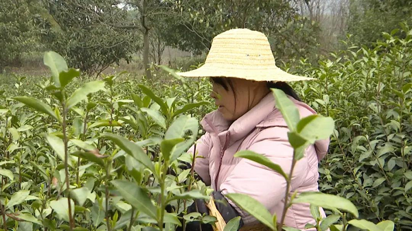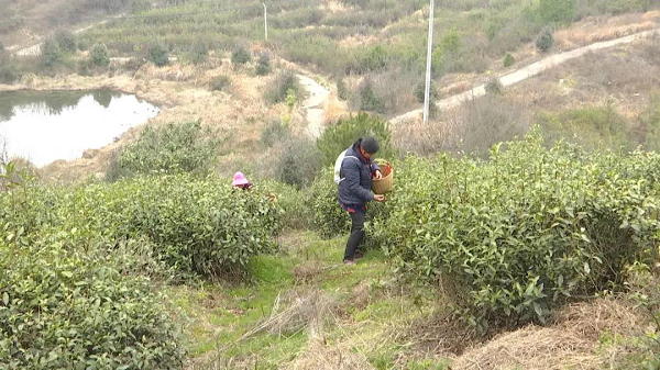 武汉鑫灿生态农业发展有限公司总经理陈新华:今年的茶叶3月1号开始采摘,每天30多人采摘,今年茶叶丰收。由于气温适宜,前段时间超过了20多度,温度湿度都达到茶叶生长所需。