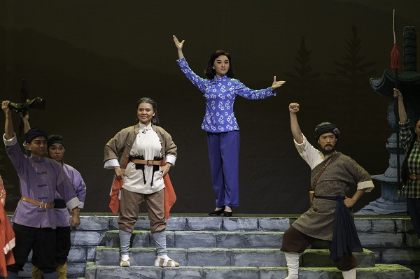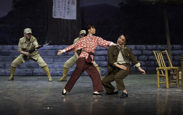 在充分发挥“唱”的优势同时,本版楚剧《江姐》守正创新,在“打”上面也有所突破。特别是第四场“智取军火”一段,演员们巧妙化用传统武戏技巧表现了紧张激烈的战斗场面,赢得观众持续不断的喝彩。该剧导演谌志君说,戏曲是门综合艺术,唱念做打各有特色,黄陂区楚剧团这批青年演员文武俱佳,如果只表现“唱”而忽略“打”就太可惜了。适当增加武戏表演,不仅更全面地展示了演员的功底,也大大提升了《江姐》的观赏性。