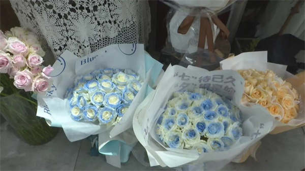 在六号门商场附近的花卉一条街,街上行人并不算多,几家花店虽然都打出了七夕促销的活动,但是进店选购的市民依然不多,据商家介绍,因为疫情,拿货风险太大,很多店家都不敢大量进货。原来鲜花销售火爆的七夕节市场显得有些清淡,更多市民会选择在网上订花。