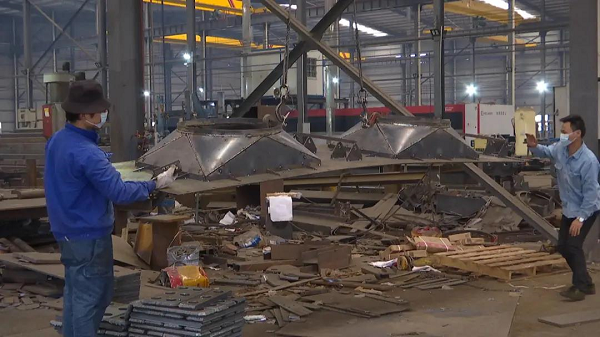 罗汉寺街大小钢模厂星罗棋布,记者近日走进一家钢模生产车间看到,百余名工人正在打磨、焊接、搬运钢材,大型激光切割机、传送设备高效运转,各种型号的钢模产品陆续下线,等待交付。
