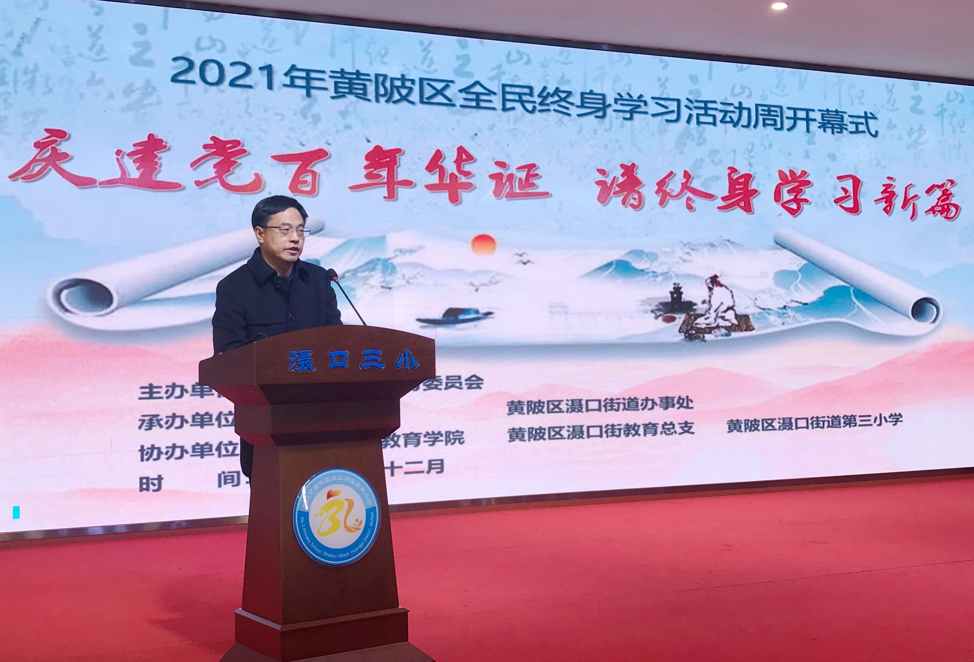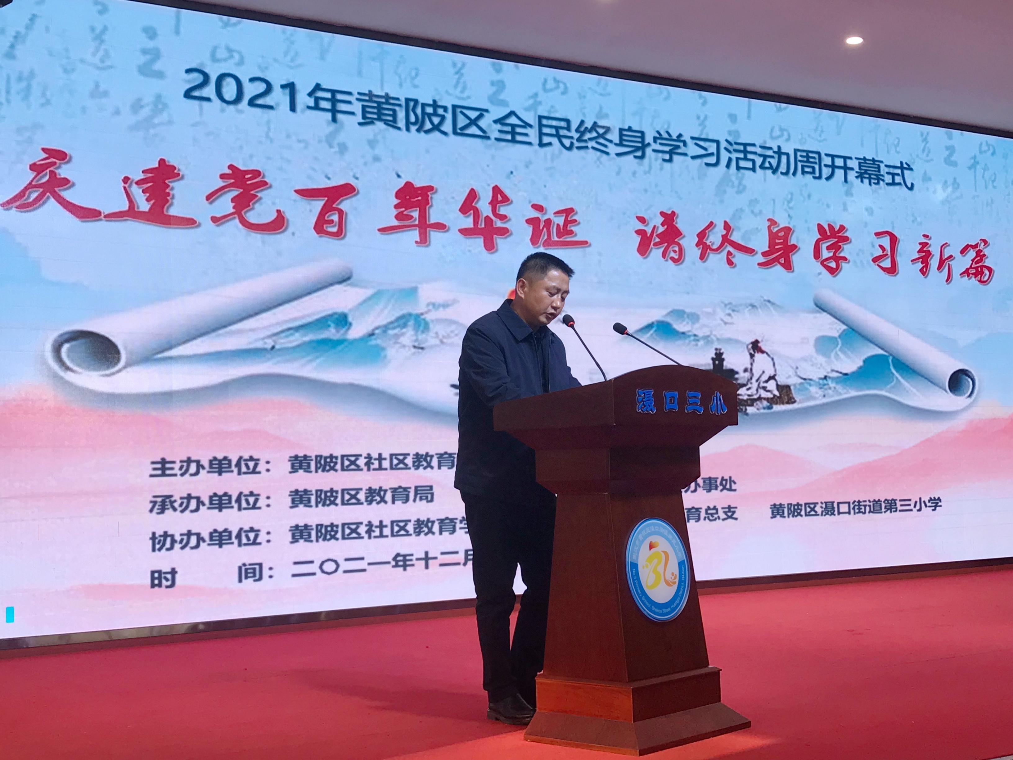 庆建党百年华诞,谱终身学习新篇。12月22日,武汉市黄陂区2021年全民终身学习活动周在滠口街道第三小学启动。2021年全民学习活动周涉及线上线下结合的社区开放学校、教育培训机构的学习服务活动以及社区教育和老年教育资源的协作开发与开放共享等内容,助推全民学习、终身学习的学习型社会建设。