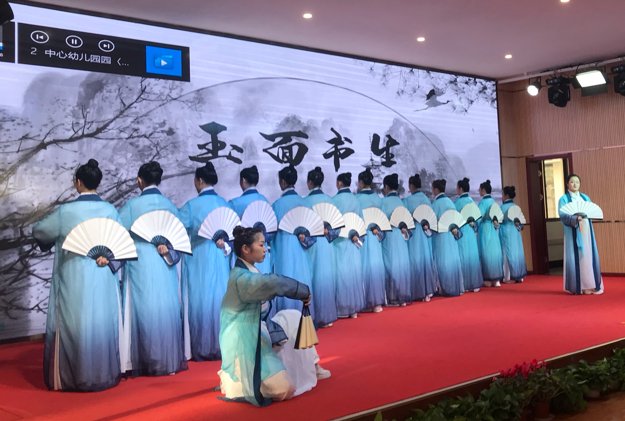 一袭飘逸长衫,一把雪白折扇,滠口街道中心幼儿园的老师们带来舞蹈《玉面书生》,现场古风荡漾。