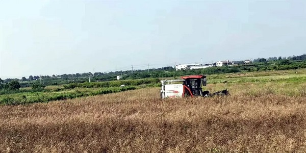 黄陂区李家集街仰山庙村的畅享荣达农机专业合作社油菜全程机械化收割