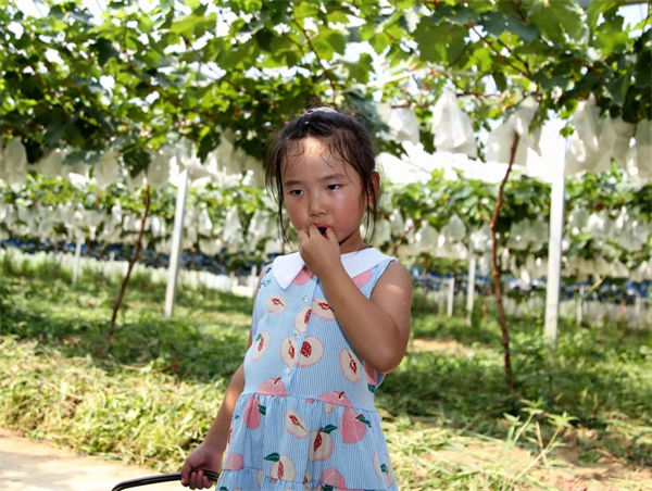 村里种植“墨姬”葡萄第二年产量就相当可观,三四亩地便能产5000多斤葡萄,产值达10万元。“墨姬”葡萄结束后,葡萄中的爱马仕品种“阳光玫瑰”也将接棒成熟,给市民提供高品质的采摘体验。
