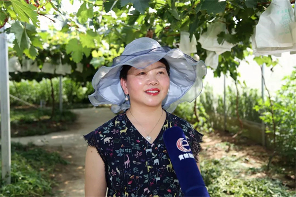 市民阮女士:“这个葡萄园我已经是第2次来采摘了,上一次来采摘吃的非常好,葡萄非常甜,今天又带着家人过来。”