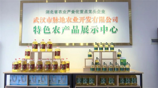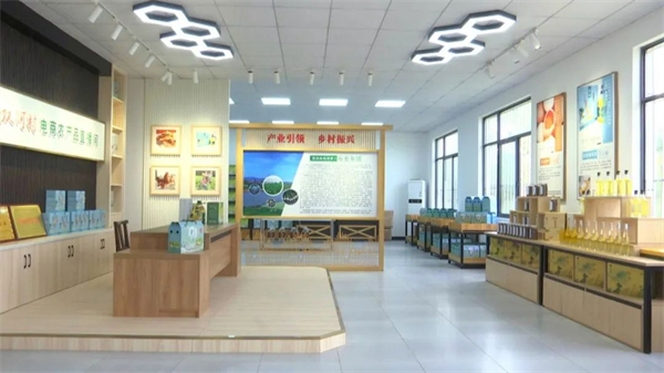 记者近日来到由脉地农业运营的双河村共享农庄看到,专业的农产品直播间展台上,萝卜油、萝卜干、土鸡蛋等各种特色农产品琳琅满目。