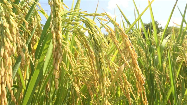 一串串颗粒饱满的稻穗在太阳照射下闪闪发光,散发出阵阵稻香,村民黄正祥告诉记者,今年水稻长势普遍较好。