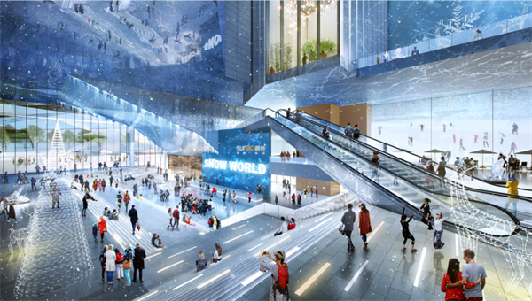 雪世界作为甘露山文创城世界级一站式旅游度假目的地核心项目,是省市重点打造的生态、文化、旅游产业价值高地。2022年,文创城内水镇商街展示区已开放,甘露湖已建成,9万平方米的雪世界冰雪综合体目前已进入加速建设期。