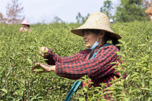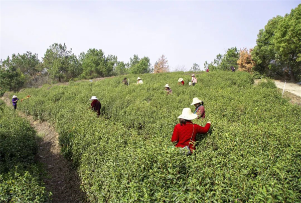 近日,黄陂各大茶园迎来了春茶采摘期,工人们忙着采摘一年中最好的明前茶。