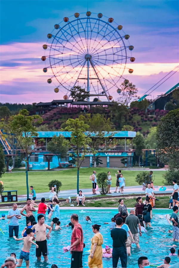 综合体内青竹绕篱,鸟语花香,绿水映蓝天,一派田园风光,美景宜人,其文旅版块已经成熟。2022年,增补农业版块,新建了1000多亩有机水稻产业片区,使现代农业生产与休闲观光旅游、农业体验旅游融合,进一步丰富文旅版块,形成集现代农业、休闲旅游、田园社区为一体的发展模式。