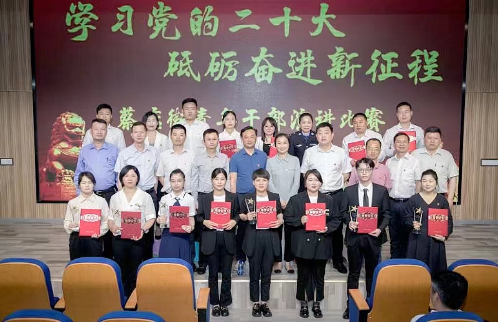 街党工委书记裴卫华为一等奖获奖选手颁奖并合影 王力军 摄