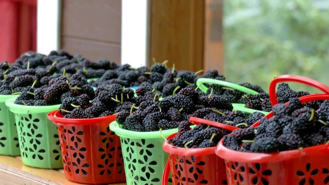 据果园负责人介绍,今年共种植桑葚23亩,经过多年的选种选育,目前主要种植无核大十、白珍珠、奶油桑葚等五个优质品种,桑葚亩产可以达到2千余斤。