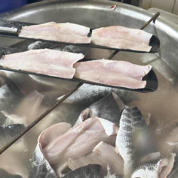 近日,记者走进生产车间内,看到工人们正在对生鱼进行加工处理。切割、分离出内脏,切割出新鲜的鱼柳,下一步工序的工人对鱼柳进行加工,把它切割成轻薄的鱼片。