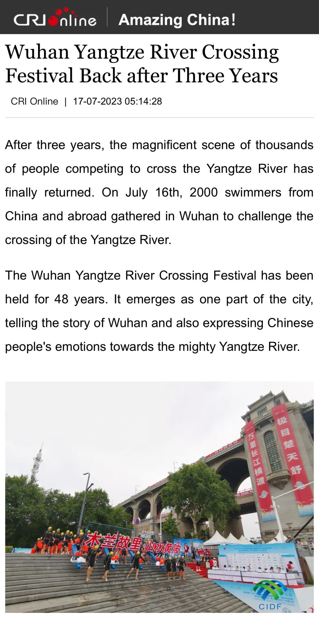 “木兰故里,山水黄陂”在本次渡江节期间登上多个海外媒体账号,向世界展示黄陂风采。