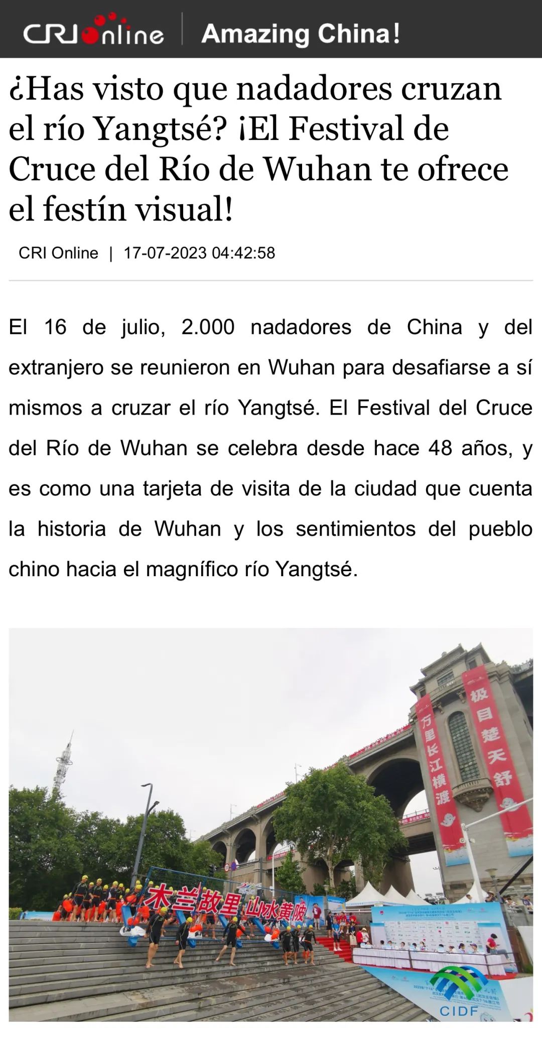 7月16日,第48届武汉7·16渡江节顺利举行,千名游泳健儿在江面上乘风破浪,充分展现“万里长江横渡,极目楚天舒”的豪情。