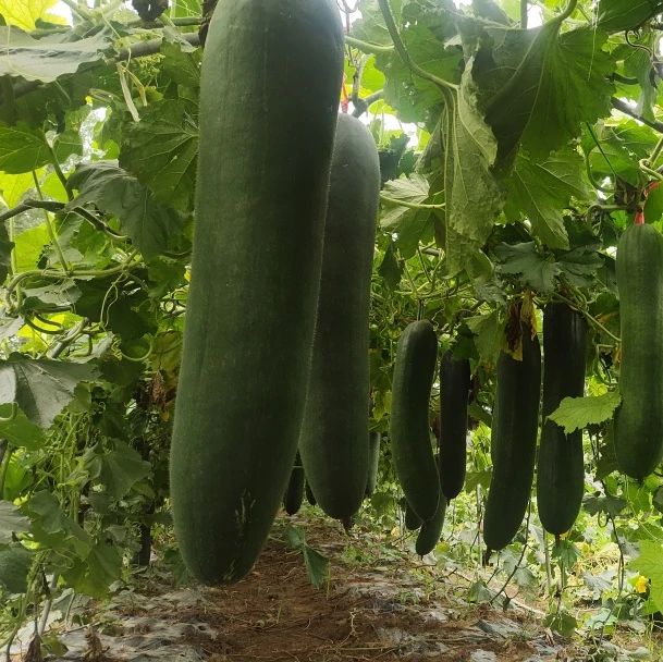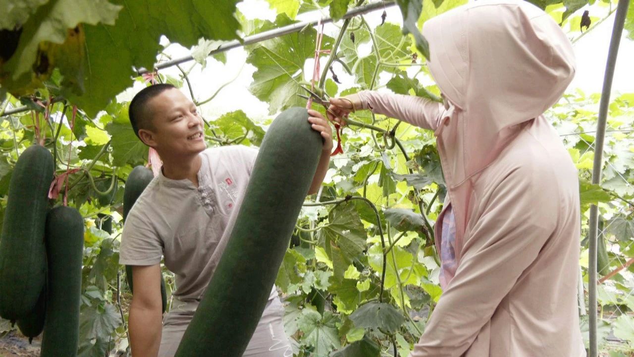 由于缺乏种植经验,加上本地的气候和海南差距非常大,前两次试种都失败了。2024年年初,明阳光积极参加黄陂区农业部门和街道组织的果蔬种植培训班,改变以往传统种植方法,采用立体化搭架种植黑皮吊冬瓜,使冬瓜在生长期充分接触阳光,避免接地部分出现“白皮”现象,种出来的冬瓜饱满油绿,营养成分高。眼下,农场10亩黑皮吊冬瓜喜获丰收,个头大、品相好的冬瓜畅销黄陂和武汉各大农贸市场以及部分高校食堂。