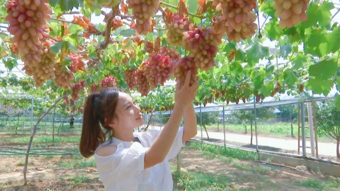 八月至,清甜可口的水果是夏日的清凉甜蜜,作为夏天的压轴水果——葡萄,将积攒数月的甜蜜尽情释放,在黄陂区罗汉寺街绿艺嘉园采摘园,葡萄成熟挂满枝,丰收飘香溢满园。