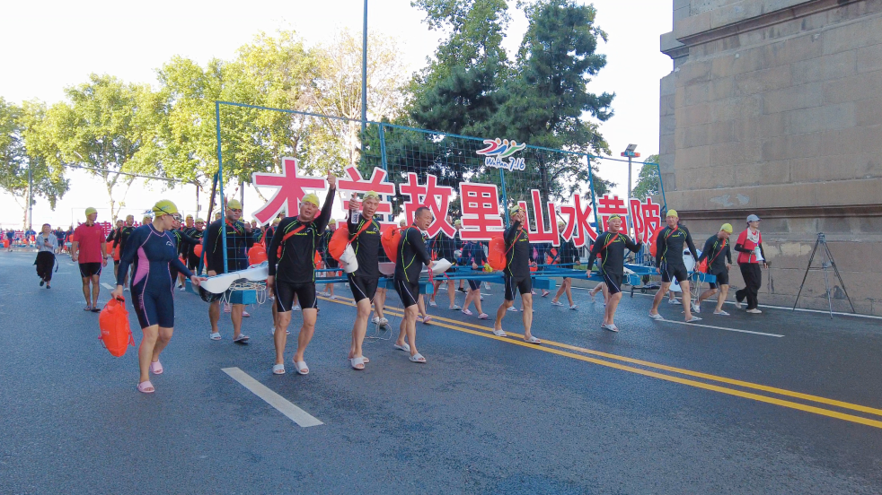 上午7点45左右,群众方队横渡长江活动正式拉开帷幕。队员们从武昌汉阳门1号明口码头下水,大家推着铭牌,在江水之中搏击波浪,之后横渡至汉口江滩三阳广场成功起水,游程约6000米,场面颇为震撼,队伍中的每个人都团结协作,展现出了黄陂区“泳”者昂扬向上的精神面貌。