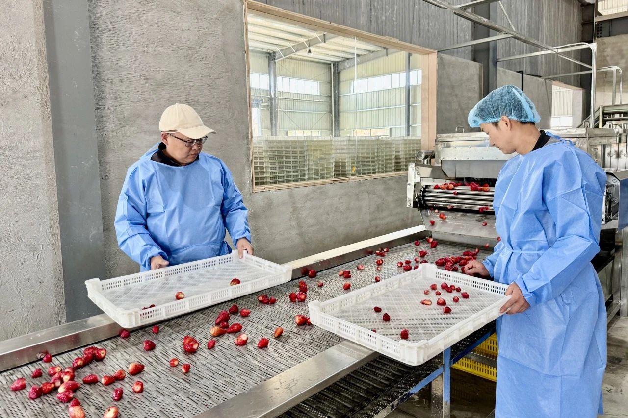 每年3至5月是草莓尾果大量产出的时期,因储存期短,缺乏有效处理途径,多数尾果只能烂在地里。如今,黄陂区木兰红草莓小镇成功破解这一难题,当地新建加工厂,通过一系列创新工艺,将原本无人问津的草莓尾果转化为极具价值的“金果”,实现了资源的高效利用和变废为宝。