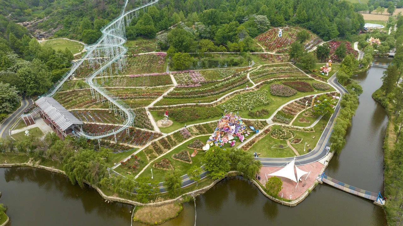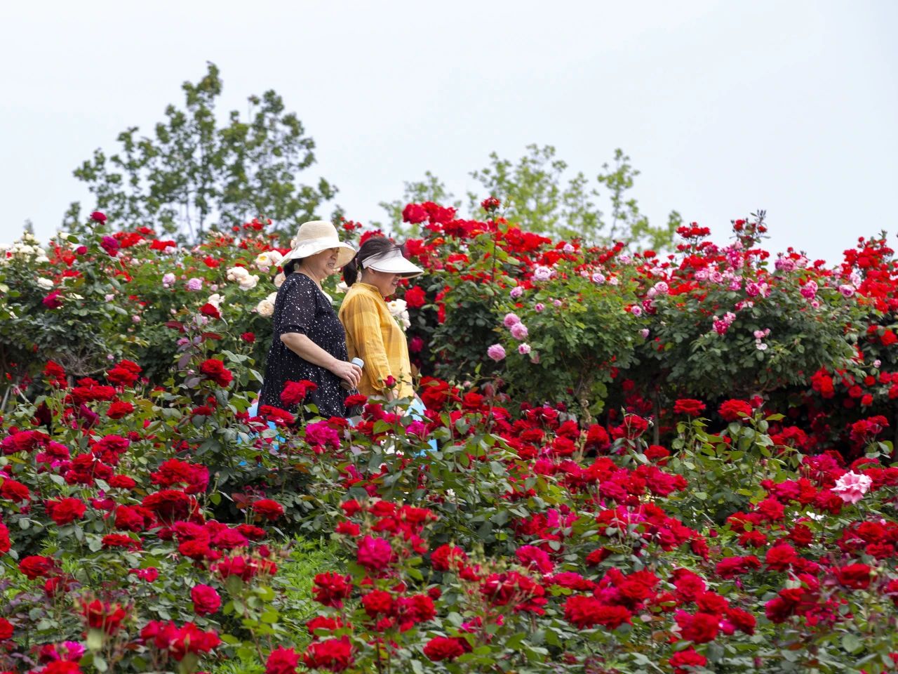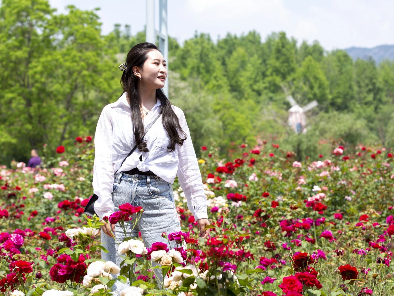 景区种植的玫瑰以“红、粉、黄、白、复色”五大色系为主,自4月份陆续开放,花期预计持续至6月底。
